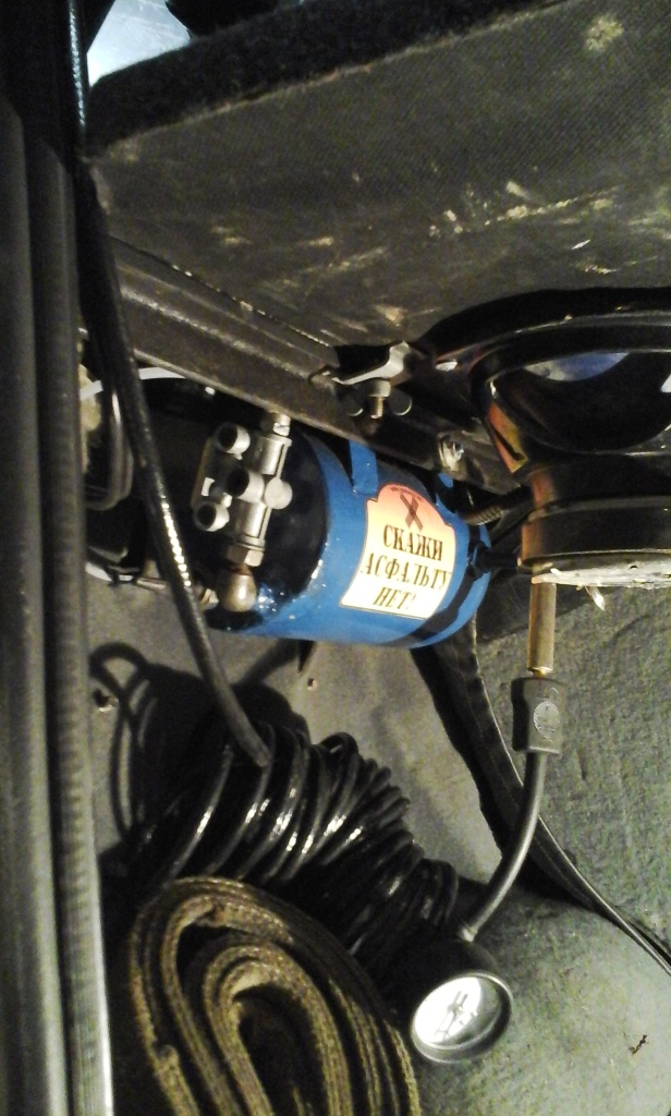Компрессор поставил на левую сторону полки на 3 шпильки, под компрессором (под полкой) ресивер с датчиком и клапаном, в этом же месте под обшивкой реле.