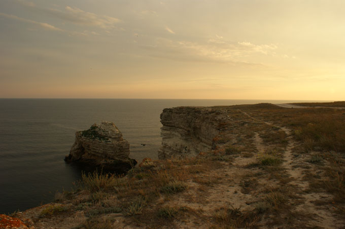Тарханкут. Западная часть Крыма, маяк, шикарные виды, гроты в скалах, дикий отдых в палатках- это всё о полуострове Тарханкут. Для желающих есть и приличные пансионаты, но сюда едут именно за диким отдыхом. Мы расположились недалеко от п.Оленёвка. Прямо на пляже можно поставить палатку (если не боитесь песка и ветра). Если есть желание- за отдельную плату нормальный туалет и пресная вода(которая только наполовину пресная, видимо скважина неглубокая). Что понравилось: ОФФИГИТЕЛЬНЫЙ пляж, чистый песок, немного народа на самом пляже, ночью тишина и спокойствие. Люди (судя по машинам) достаточно серьёзные. Рядом в посёлке-аптека, мед.пункт, магазины, бары и т.д.. Проедете на машине вдоль побережья к маяку, чуть дальше и увидите обалденные пейзажи. Словами передать трудно- смотрите фото.
