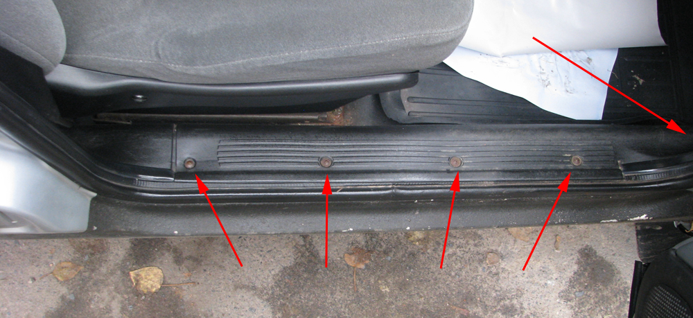 От заглушки аэрбэга по правому борту под порогами в багажник
