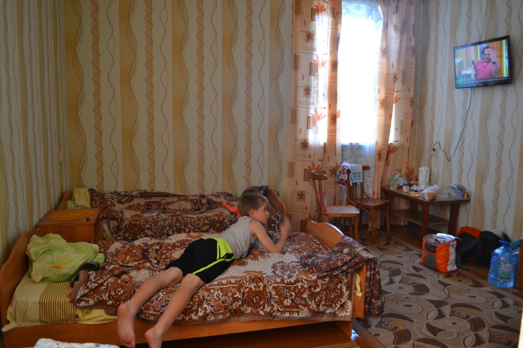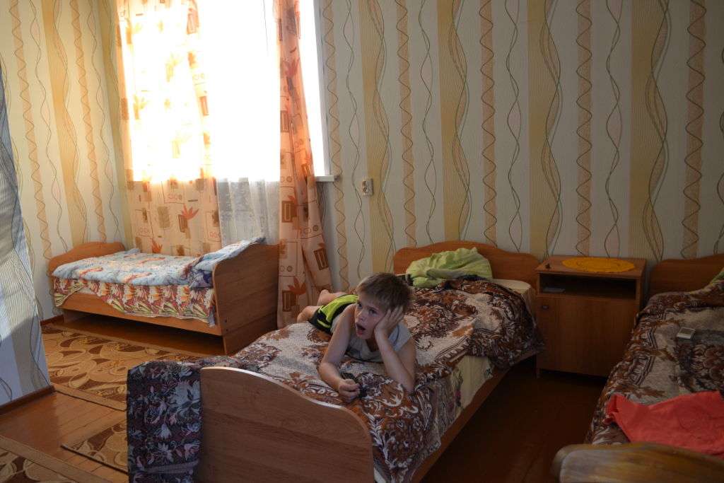 21-00 въехали в город, находим гостиницу «Виктория» (бронировали за сутки на www.booking.com) 4х местный номер, холодильник, телевизор, wi-fi, ванна и туалет рядом за 2000 руб. в сутки. Вполне себе симпатично.